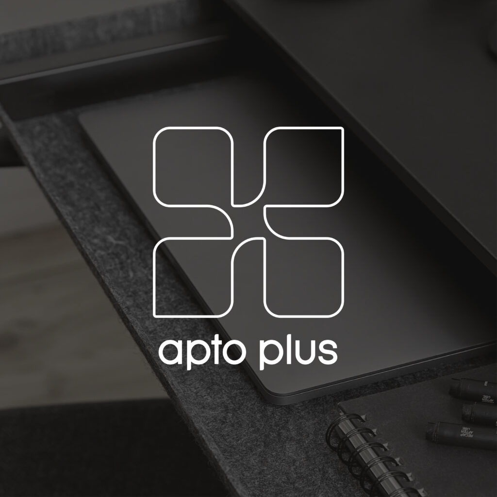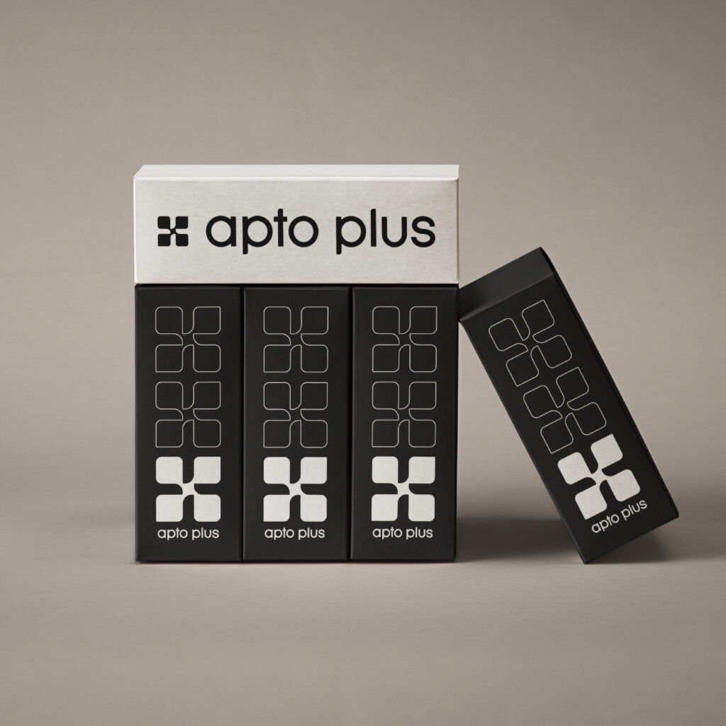 Vi har hjulpet med valg af nyt navn, apto plus, designet logo & brandmark, valgt typografi, farver, Vi har lavet retningslinjer for Tone of Voice, website-design udkast, samt omfattende designmanual.