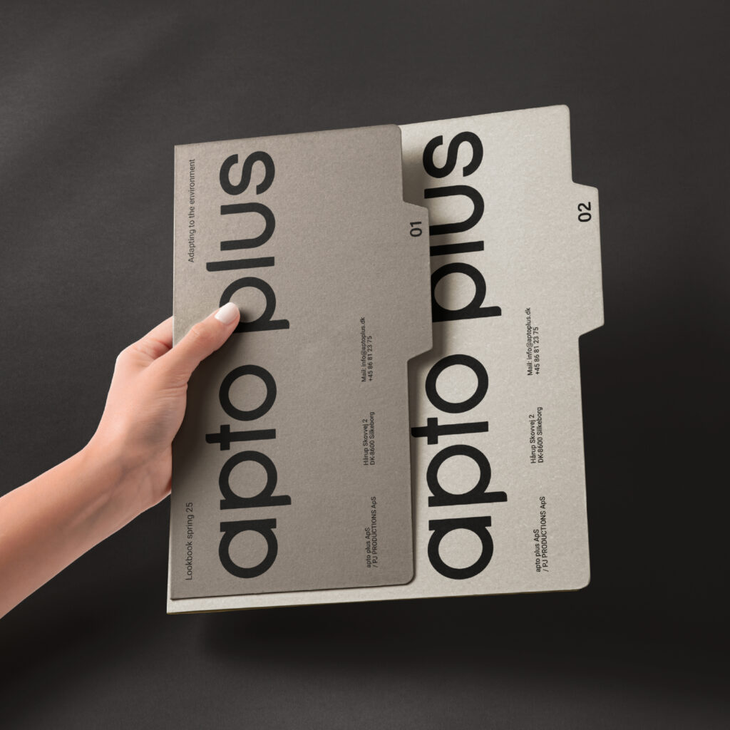 Pj productions fra 1997, med under-brand’et apto collection, ønskede en sammensmeltning af de 2 brands og dermed en ny visuel identitet. Der var behov for nyt fælles navn og en grundig gennemgang af virksomhedens DNA. Det var vigtigt for dem at deres ansatte kunne se sig selv i skiftet og være “med på rejsen”.
